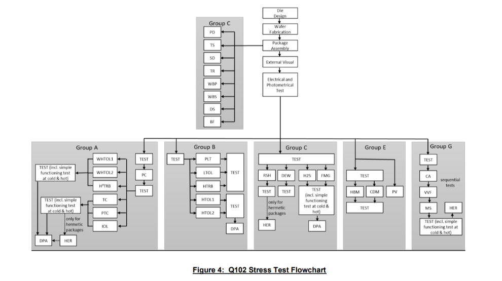 由福特、克莱斯勒、通用组成的汽车电子委员会(AEC) 颁布了光电器件的可靠性标准AEC-Q102,对光电器件的可靠性展开了严格的测试要求,为主机厂提供了可靠性高、使用寿命长的光电器件。卡伦AEC-Q技术团队,执行过大量的AEC-Q测试案例,积累了丰富的认证试验经验,可为您提供更专业、更可靠的测试服务,同时我们也提供LED、光电二极管、晶体管、激光器件的环境试验服务。