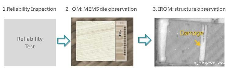 1、无损分析:X射线检查发现MEMS组件存在暂时性锁定缺陷。