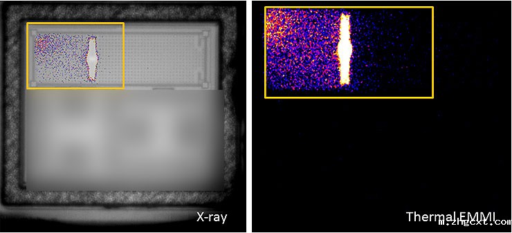 2、电气实验分析:采用热EMMI检测技术来精确定位锁定位置(见下图)。