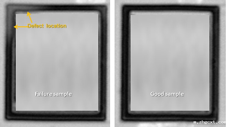 与客户审查后的初步结论表明,MEMS 组件的键合环存在错误。SAT 扫描证实了键合环分层导致了这种不稳定的 Q 值误差。