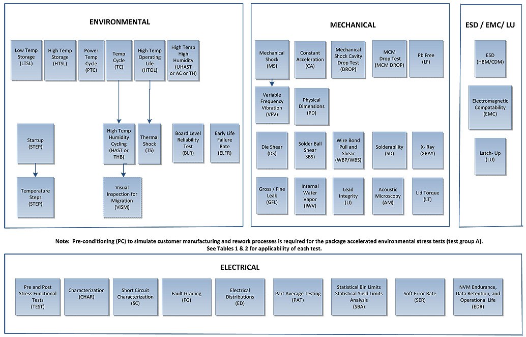 尽管比消费类 IC 同行更严格,但 AEC 测试标准是基于 JEDEC 或 MIL-STD 以及包括机电兼容性 (EMC) 在内的附加规范。